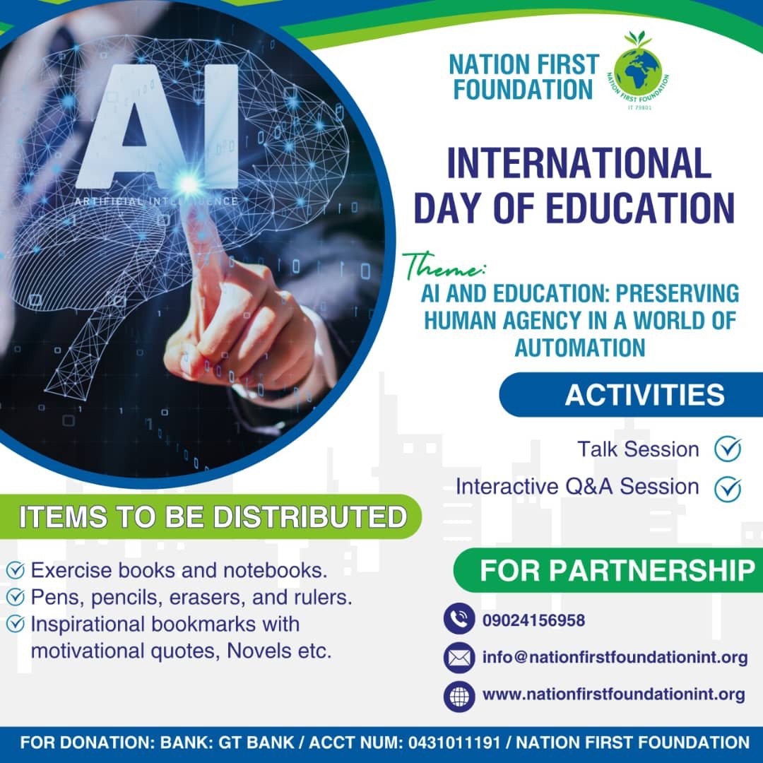 The future of education was the focus of our International Day of Education event on January 24th. Nation First Foundation celebrated with a day of insightful talks and lively discussions on the role of AI in shaping learning, always keeping human agency at the forefront. We believe in empowering the next generation, and through scholarships and vital school supplies, we took meaningful steps towards building a brighter future.